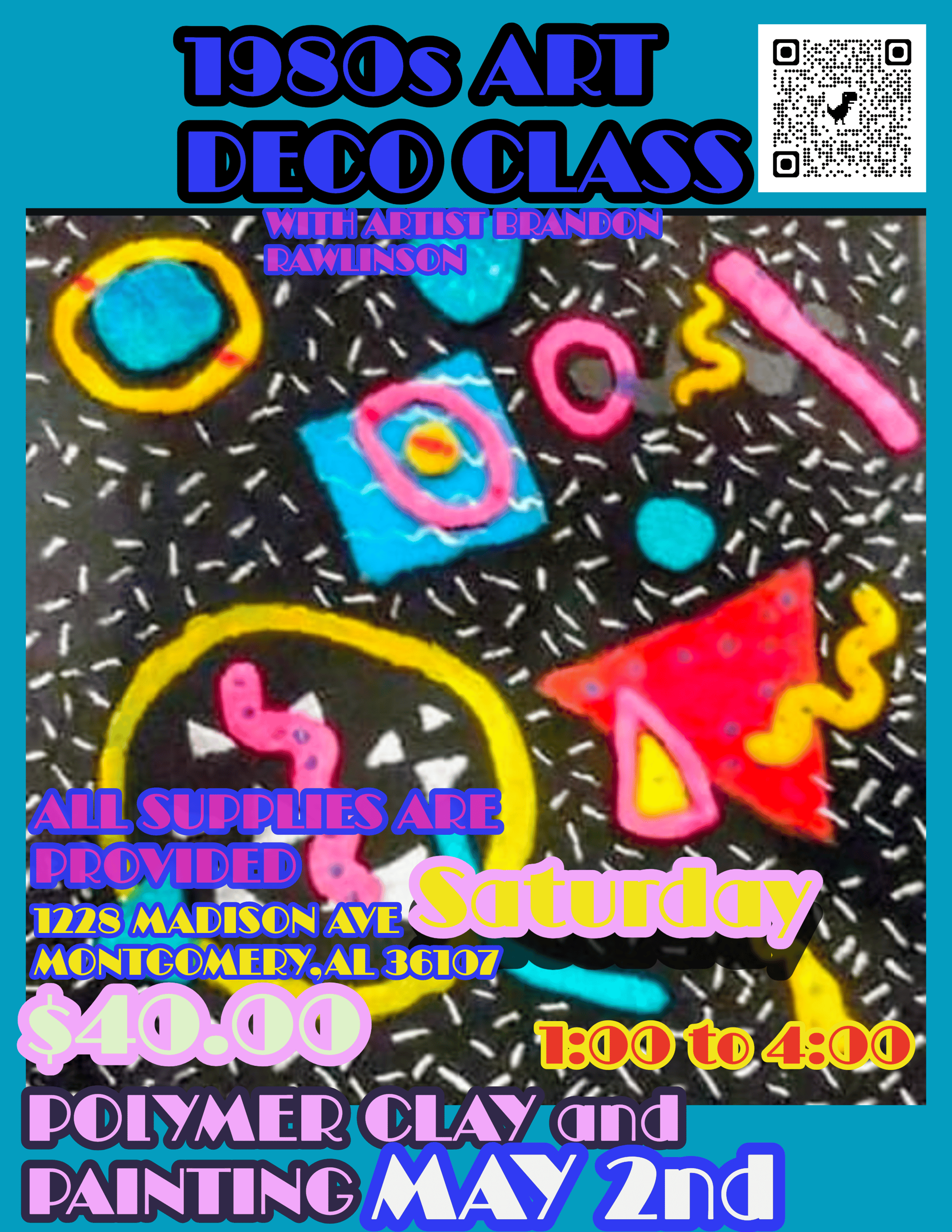 Create your own 1980's art deco with polymer clay and paint on a flat canvas panel. All the supplies provided.