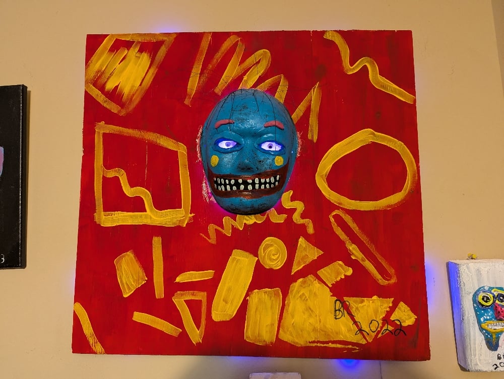24x24 in Mixed media art with black lights behind my mask